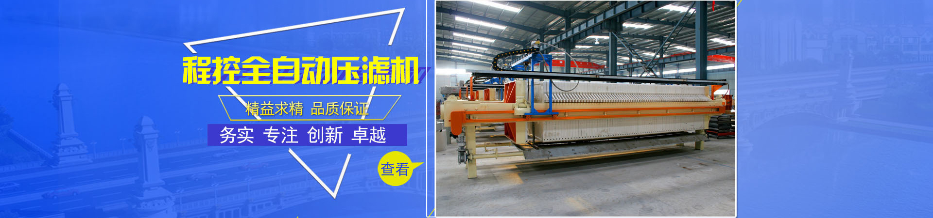 州市巍峨压滤机有限公司是国内生产分设备的专业厂家位于州市古城工业园区。我公司主要产品有:(x)液压压紧压o机、自动压滤机、隔膜压滤机、机械式压o机、板框压滤机式压o机,压榨带式qo机、橡胶真I带式过滤机、压滤机专用滤板pd板框、压滤机专用c振动筛{?q泛应用于石沏V造纸、淀(wn)_、冶金、环保及污水处理{行?...